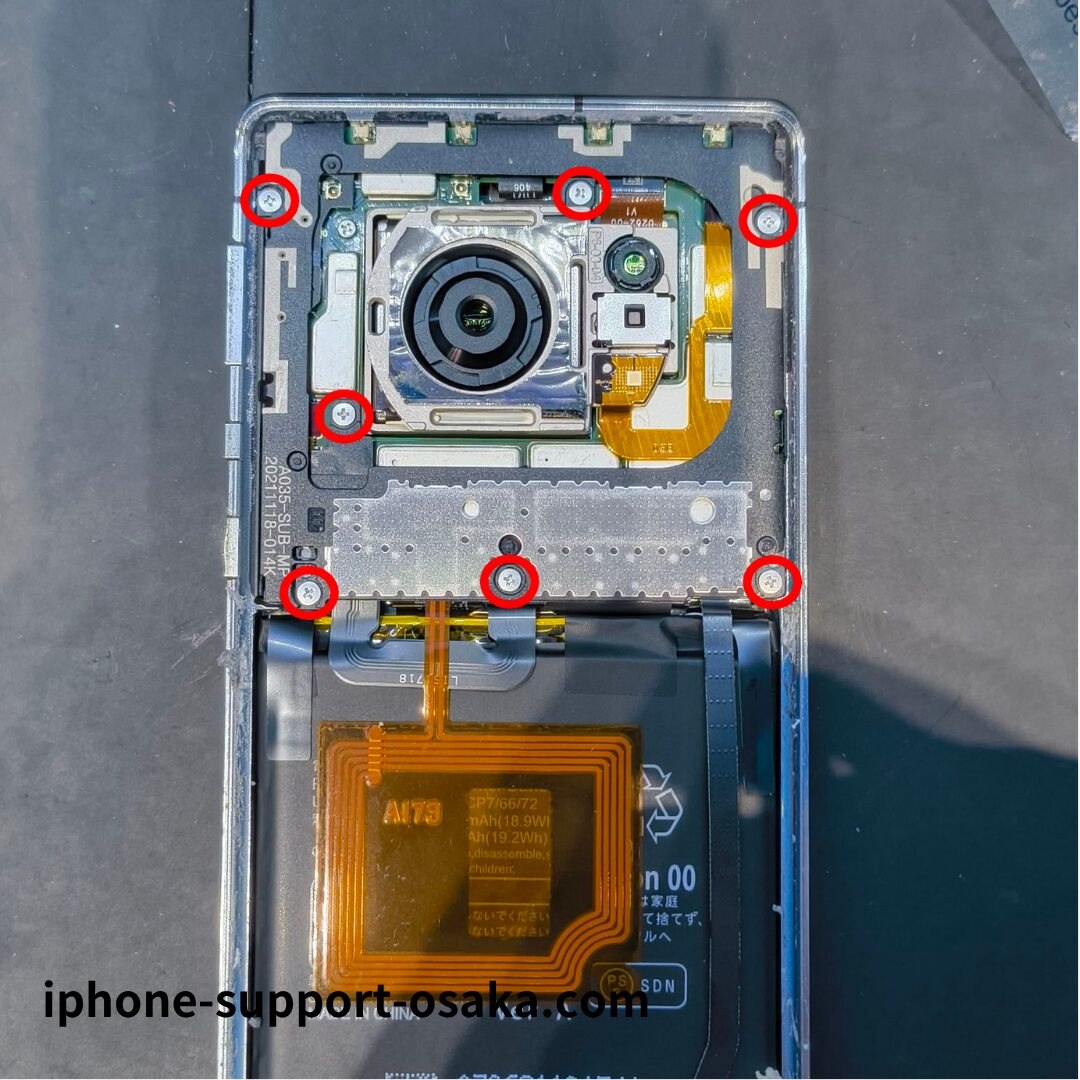次に、上部の基板カバーを固定しているプラスネジ7本を外し、カバーを取り外します。