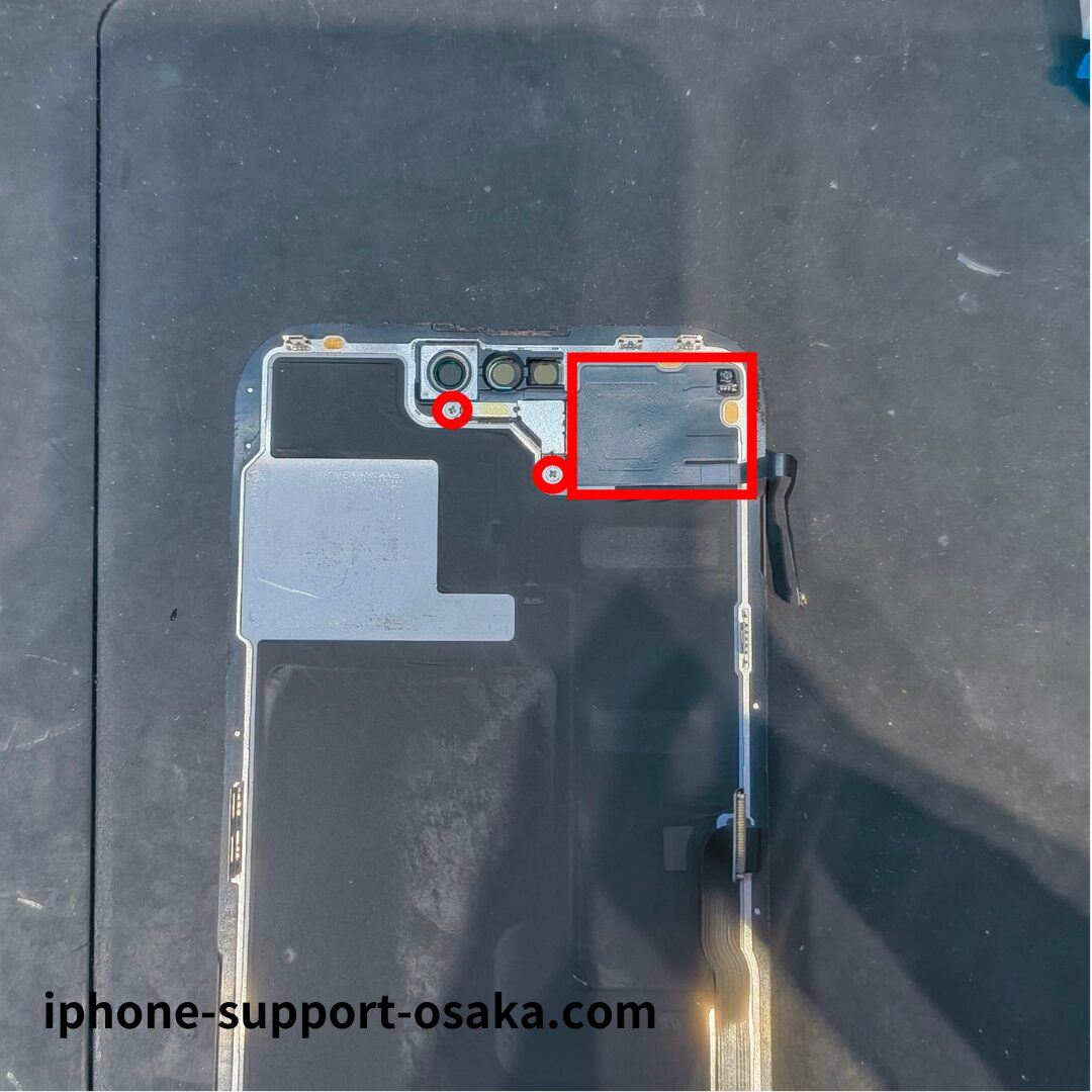 続いて、古い画面からセンサーを取り外します。センサーはプラスネジ2本で固定されているため、ネジとプレートを外したあと、熱またはエタノールで接着を弱めて丁寧に取り外します。