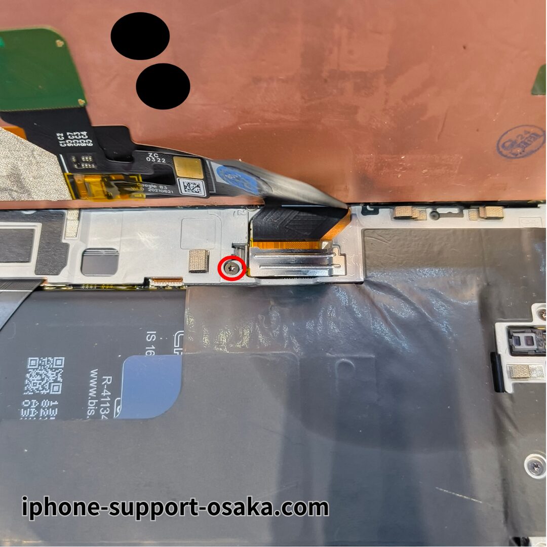 torx plus ネジを1本取り外し、プレートをピンセットで外した後、画面ケーブルを取り外します。