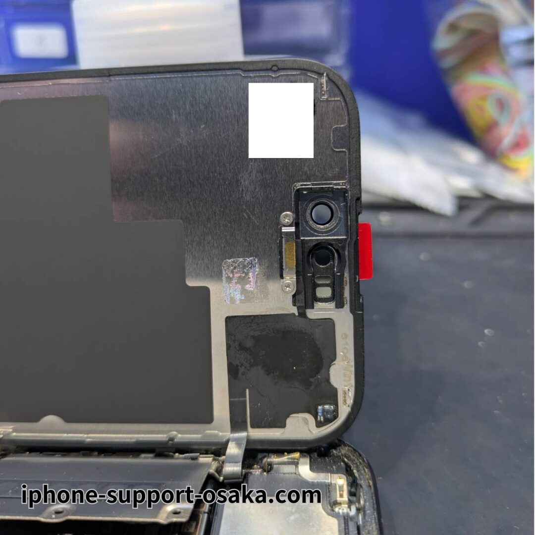 古い画面からフロントセンサーを新しい画面へ移植し、すべての部品とプレートを元に戻して修理完了です。