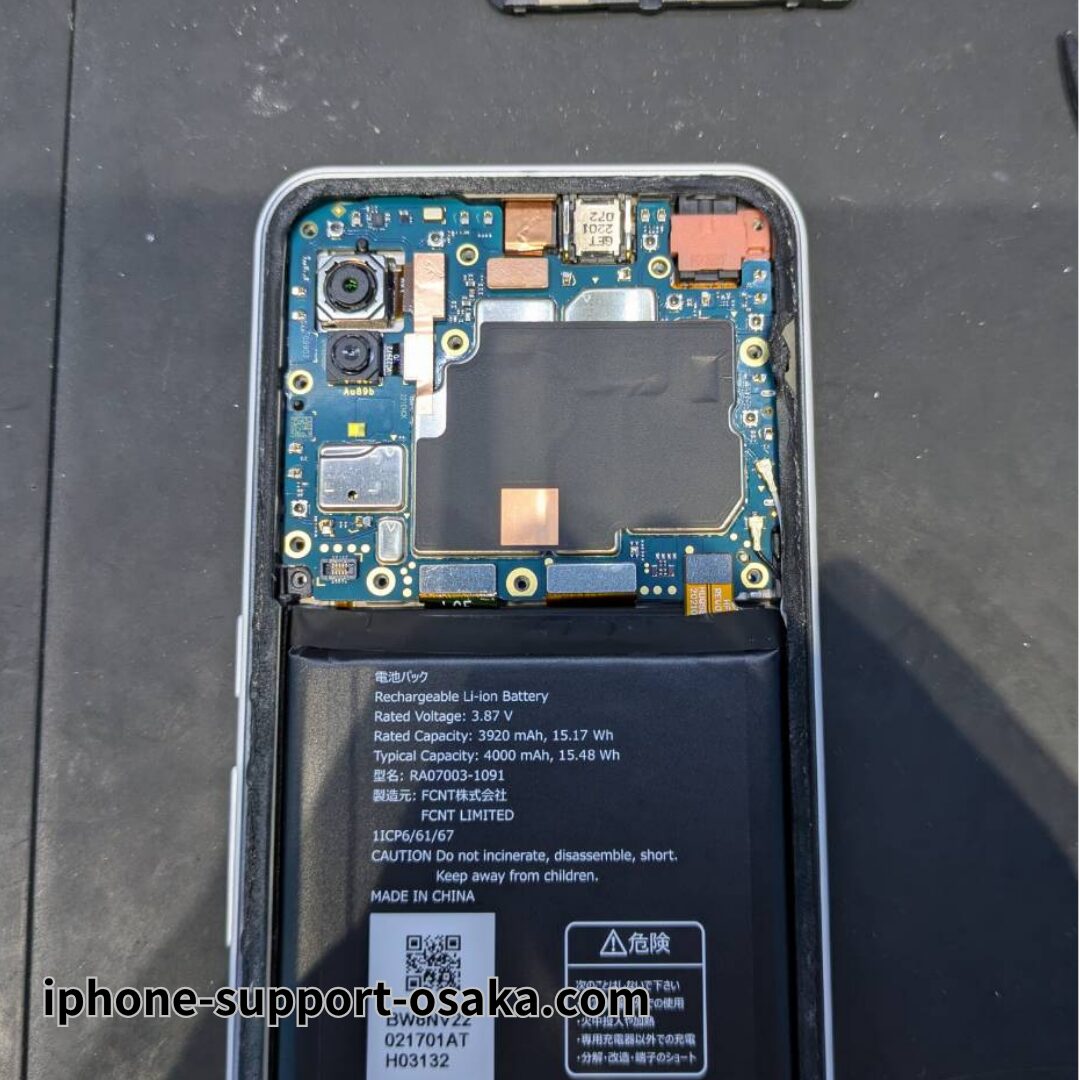 今回お預かりした端末は富士通Arrows Weです。5年間大事に使っていただいているけど、最近バッテリーの減りが早くなり、長く持たない状態になりました。気に入ってるスマホなので買い替えるよりできるだけ修理ご希望でした。
