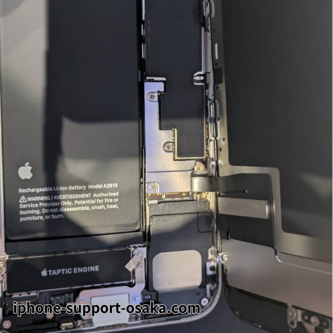 今回の修理は互換バッテリーを使用し、作業時間は約40分でした。動作確認では表示、タッチ、Face ID、センサーなどすべて正常に動作しており、問題なく復旧しました。