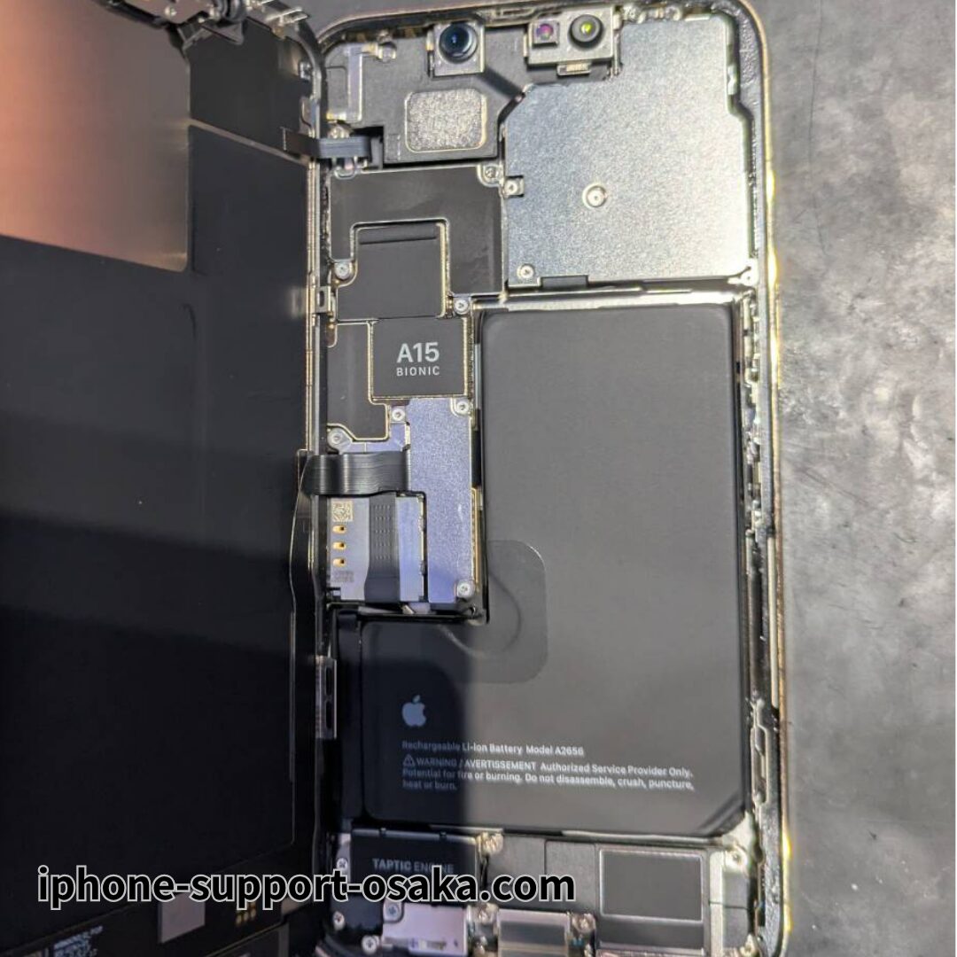 今回の修理は互換バッテリーを使用し、作業時間は約40分でした。動作確認では表示、タッチ、Face ID、センサーなどすべて正常に動作しており、問題なく復旧しました。
