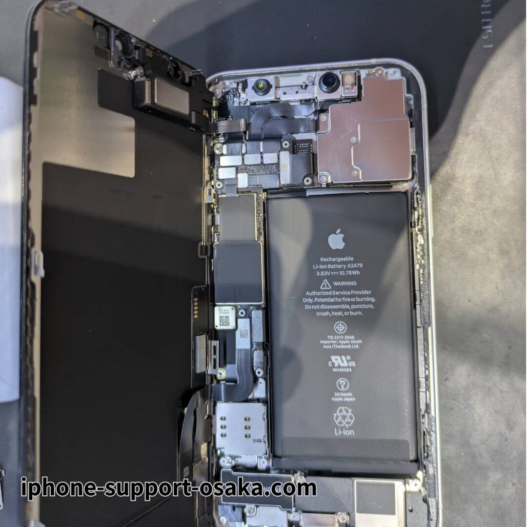 今回の修理は互換バッテリーを使用し、作業時間は約40分でした。動作確認では表示、タッチ、Face ID、センサーなどすべて正常に動作しており、問題なく復旧しました。