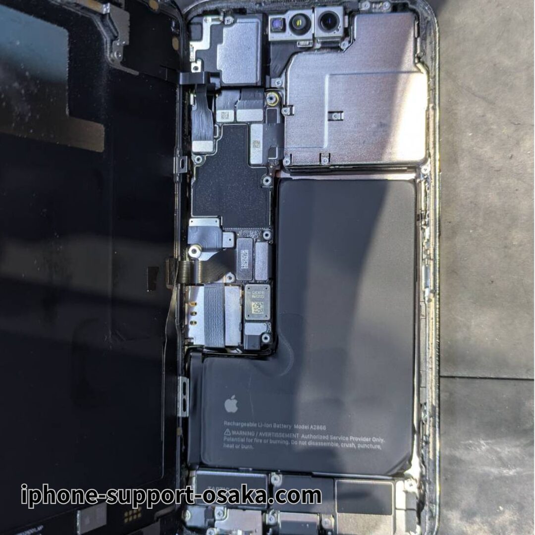 今回の修理は互換バッテリーを使用し、作業時間は約40分でした。動作確認では表示、タッチ、Face ID、センサーなどすべて正常に動作しており、問題なく復旧しました。